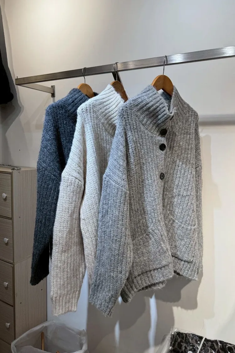 翻立領排釦口袋針織外套