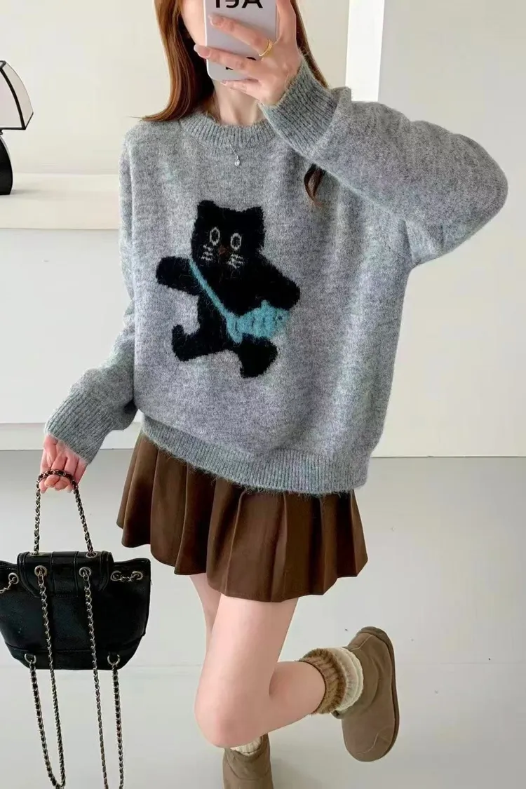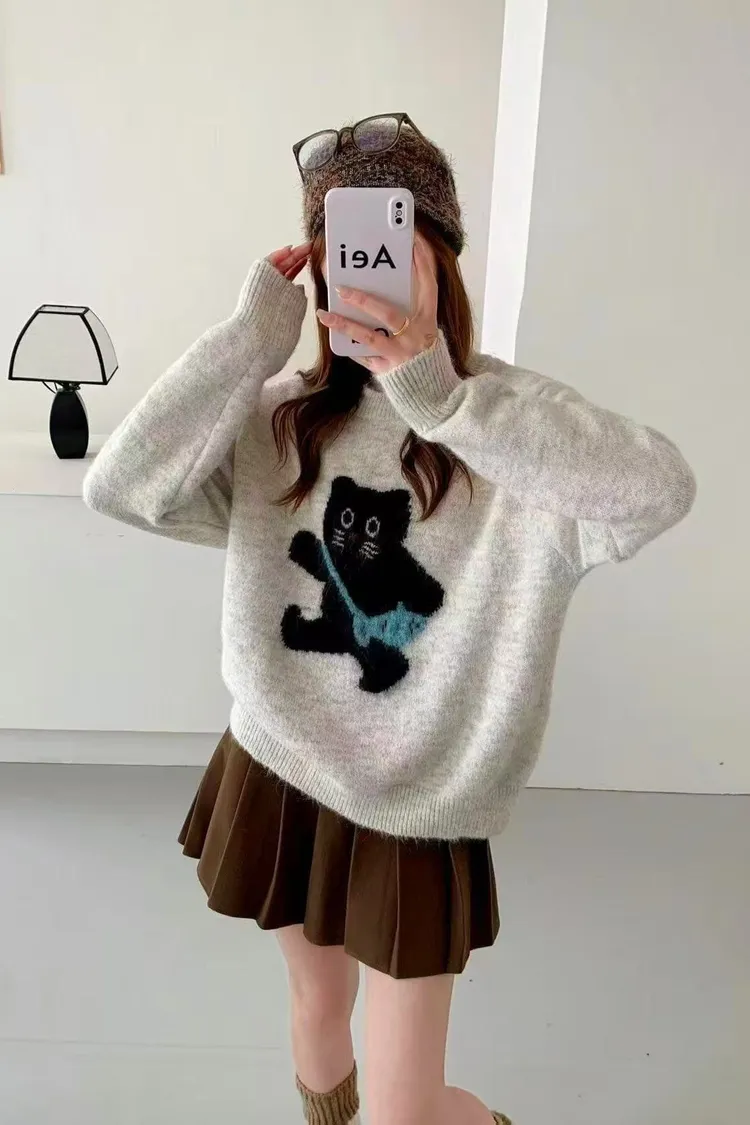 黑色貓咪針織上衣