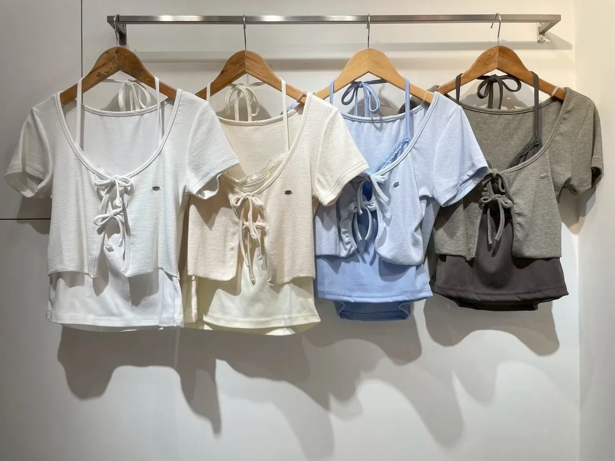 雙蝴蝶結假兩件蕾絲掛脖衣