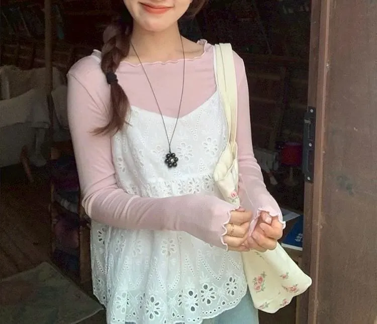 肩帶可調緹花下傘背心