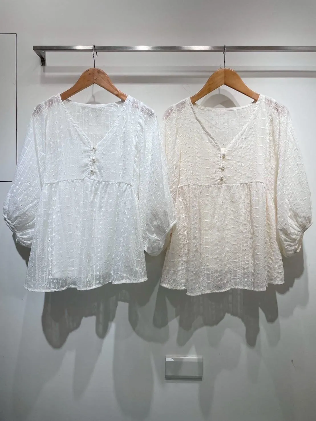 珍珠扣蕾絲緹花傘擺娃娃衣