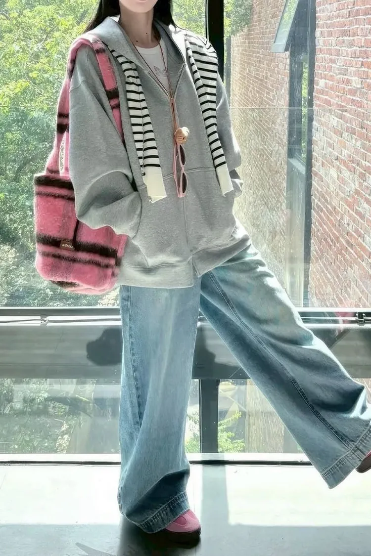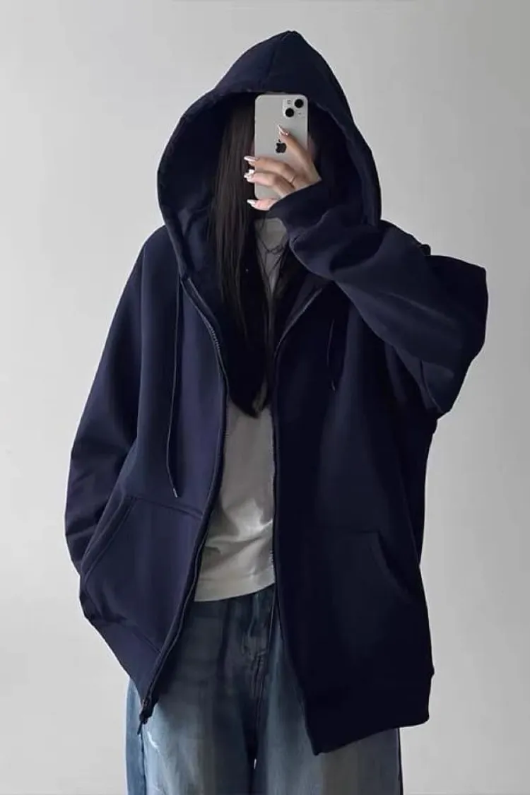 素色連帽拉鍊長版牛奶絲棉外套