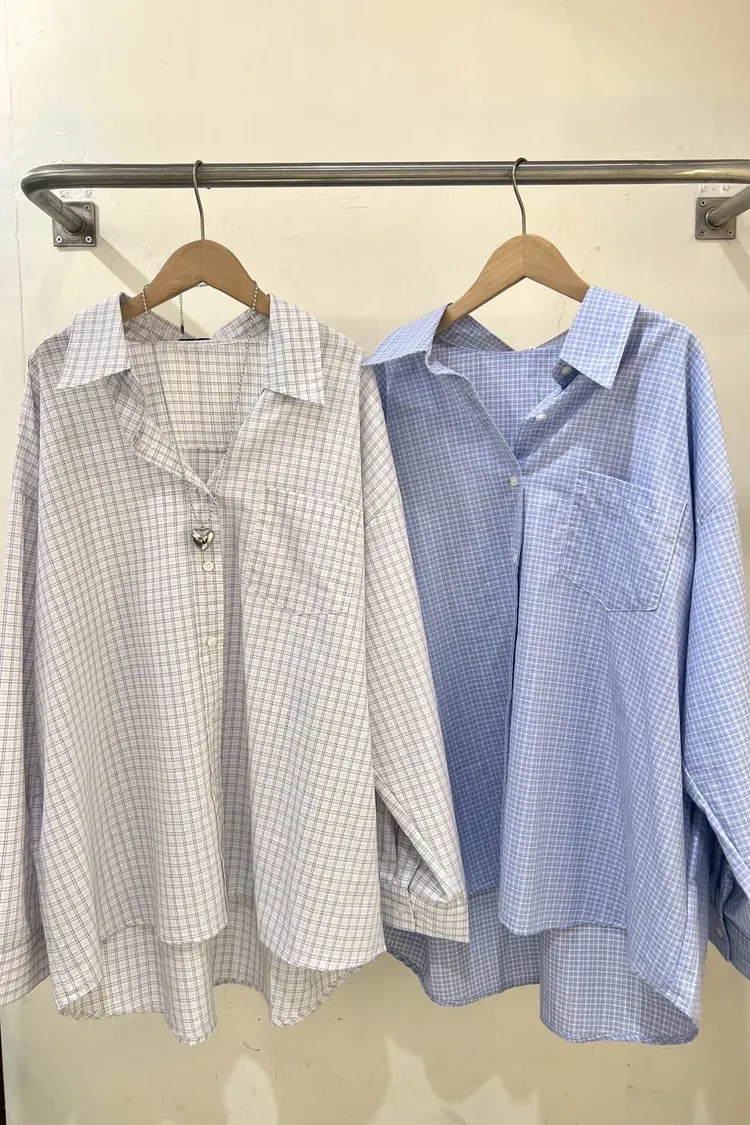 前短後長格紋百搭襯衫